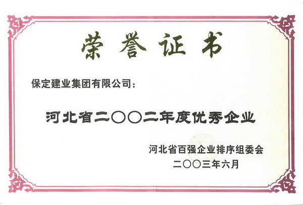 02年度省百強(qiáng)優(yōu)秀企業(yè)證書