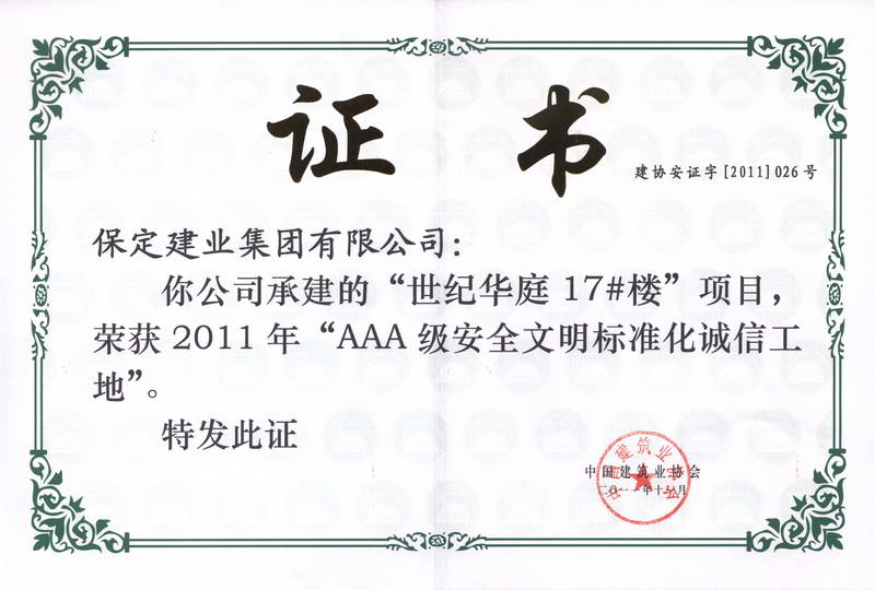 世紀華庭17樓全國3A級安全文明...