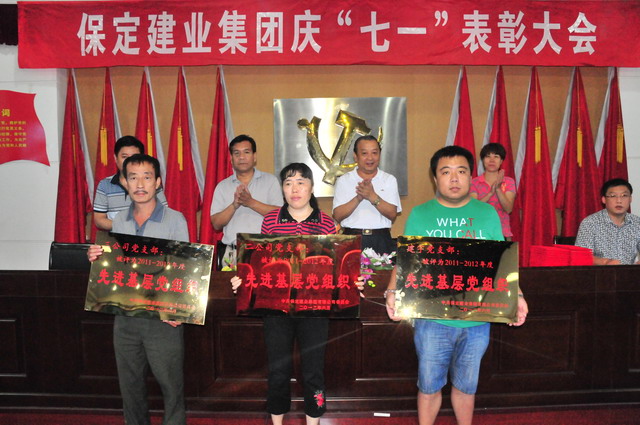 2012年7月6日在我集團會議室隆重招開“七一表彰大會”!集團公司黨委希望受表彰的先進基層黨組織、優秀共產黨員、優秀黨務工作者,發揚成績,珍惜榮譽,再接再厲,為企業的發展做出新的貢獻。同時號召全體黨員干部以“先進”為榜樣,要“學先進、爭先進、當先進”,要緊密團結在集團公司黨委周圍,認真踐行科學發展觀,在自己的工作崗位上發揮先鋒模范作用,為黨旗增光添彩,為企業發展建功立業。